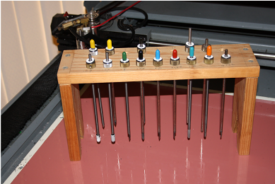 This machine is one of my 'babies', was sold and installed by A. Miles. The spindle motor is about 18 months old, very little use. Includes new sticky mat, cutters, locking plates ( the black plates with pins ) pumps and a couple of sheets of laminate. |